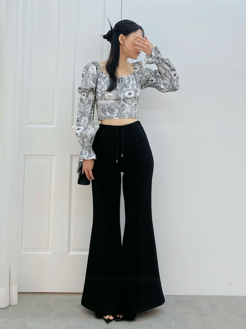 【トップス】 マムルークスリーブのフラワーブラウスです♡ トレンドの花柄が華やかさをプラスし、着映えの1着です。 【パンツ】 ダンボールで仕上げたハイウエストのフレアパンツです♡ フロントにピンタックをあしらいさらにスタイルアップ効果が抜群です。 【シューズ】 ふわふわフェザーがポイントのサンダルです♡ 足首に施したチェーンは女性らしさを演出してくれます。 23.5cmのMサイズを着用してます。 【バッグ】 立体感のあるキルティングとゴールドチェーンが、シンプルなスタイリングにも上品な華やかさをプラスしてくれるバッグです♡ コンパクトながら、スマホ・ミニ財布・リップなど必需品はしっかり収納可能です。
