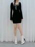 【ワンピース】 デコルテラインに施したリボンデザインと華奢なストラップが、さりげない色気をプラスしてくれるワンピースです♡ 1枚でコーデが完成するので、デートや特別なお出かけにもおすすめです。 【シューズ】 高めのヒール✕前ストームで、見た目以上に安定感があり、自然にスタイルアップが叶うショートブーツです♡ レースアップデザインが脚をきゅっと細く見せてくれるのも嬉しいボイントです。 23.5cmのMサイズを着用してます。