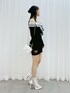 【ワンピース】 フェミニンとモードを掛け合わせた、主役級ニットワンピースです♡ 大きめのリボンディテールが視線を惹きつける1枚です。ボディラインに沿うコンパクトなシルエットは、女性らしいメリハリを演出しつつ、ニット素材ならではの伸縮性で着心地も◎。ミニ丈でも上品にまとまるバランス感が魅力です。 【シューズ】 高めのヒール✕前ストームで、見た目以上に安定感があり、自然にスタイルアップが叶うショートブーツです♡ レースアップデザインが脚をきゅっと細く見せてくれるのも嬉しいボイントです。 23.5cmのMサイズを着用してます。 【バッグ】 立体感のあるキルティングとゴールドチェーンが、シンプルなスタイリングにも上品な華やかさをプラスしてくれるバッグです♡ コンパクトながら、スマホ・ミニ財布・リップなど必需品はしっかり収納可能です。