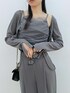 【トップス】 伸縮性のあるリブ素材で仕上げたカップ付きのキャミソールとカーディガンです♡ 透け感のある柔らかなチュールをあしらったフェミニンなキヤミトップスに同素材のカーディガンはフロントにあしらったバックルはさりげないアクセントに◎ 【パンツ】 フロントにデザインタックを施したワイドパンツ♡ フロントのタックと落ち感のある素材でお腹周りがスッキリと演出してくれます。オフはもちろんオフィスシーンにもマッチするアイテムです。 【シューズ】 透け感のあるメッシュ生地柔らかなフェイクレザー生地で仕上げだショートブーツです♡ 後ろのリボンデザインはポイントです。 デニムなどのカジュアルアイテムからガーリーアイテムまで幅広く活用できる優秀な1足です。 【バッグ】 立体感のあるキルティングとゴールドチェーンが、シンプルなスタイリングにも上品な華やかさをプラスしてくれるバッグです♡ コンパクトながら、スマホ・ミニ財布・リップなど必需品はしっかり収納可能です。