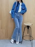 【ジャケット】 ベーシックデザインのコンパクトなデニムジャケットです♡ カジュアルながらもさまざまなコーデに合う1着です。 【トップス】 チュリップフラワープリントでフェミニンさをプラスするブラウスです♡ 甘くなりすぎないバランスが今っぽいポイントです。 【パンツ】 センターライン入りのフレアデニムは脚長効果抜群です♡ 裾スリットあしらったキラキラストーンのディテールがアクセントになり、シンプルながらも今っぽい印象に仕上がります。 【シューズ】 高めのヒール✕前ストームで、見た目以上に安定感があり、自然にスタイルアップが叶うショートブーツです♡ レースアップデザインが脚をきゅっと細く見せてくれるのも嬉しいボイントです。 23.5cmのMサイズを着用してます。 【バッグ】 コンパクトなサイズ感ながら、ミニ財布やコスメボーチなどしっかり収納可能なミニリュックです♡ どんなコーデにも合わせやすく、デイリー使いからお出かけまで幅広く活躍してくれます。