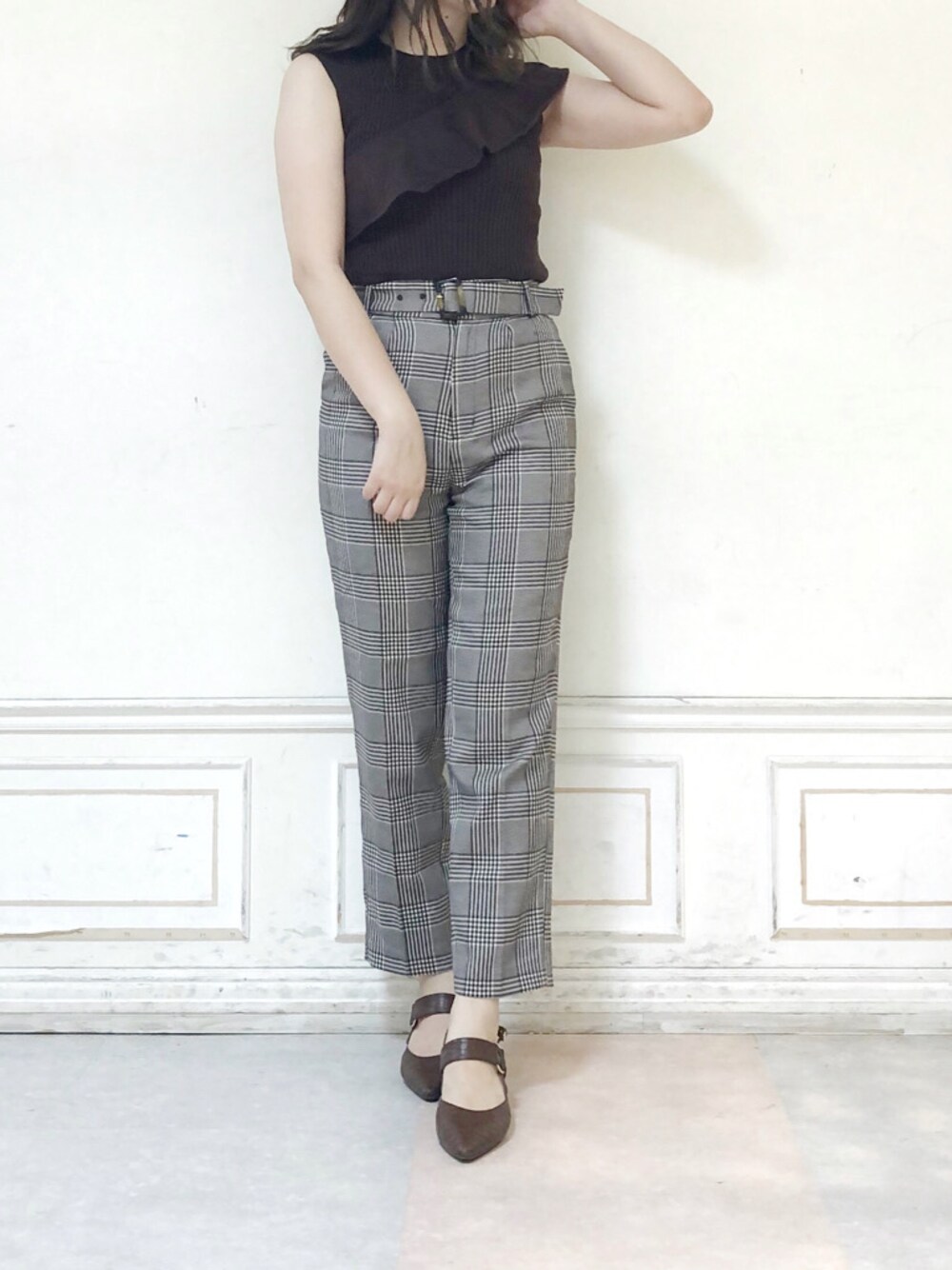 ノースリーブでも、ブラウン×チェック柄で秋を意識したコーデに♡ 秋本番にはこの上にジャケットやライダース、Gジャンなどを羽織っても◎