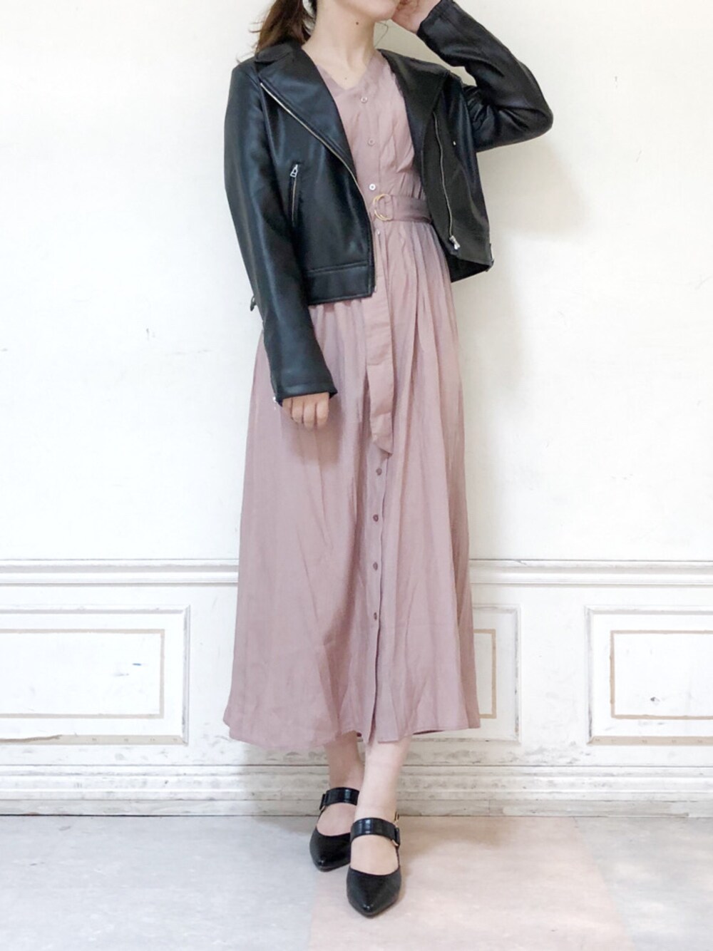 ピンク×ブラックで甘辛コーデに♡こちらのワンピースはさらっとした素材なので着心地抜群です❤︎