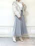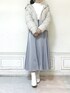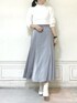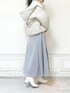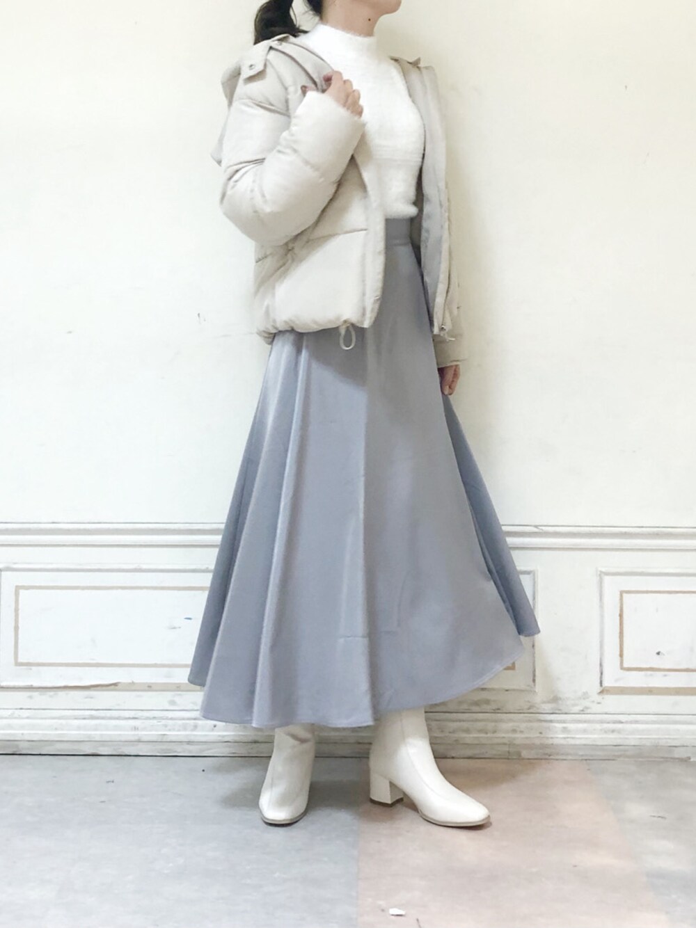 透明感溢れる寒色コーデ♡グレーのスカートを主役にして、他のアイテムはアイボリーでまとめました❤︎ こちらのスカートはサテン生地になっているので、歩くたびに艶々と輝いてとても綺麗です♡