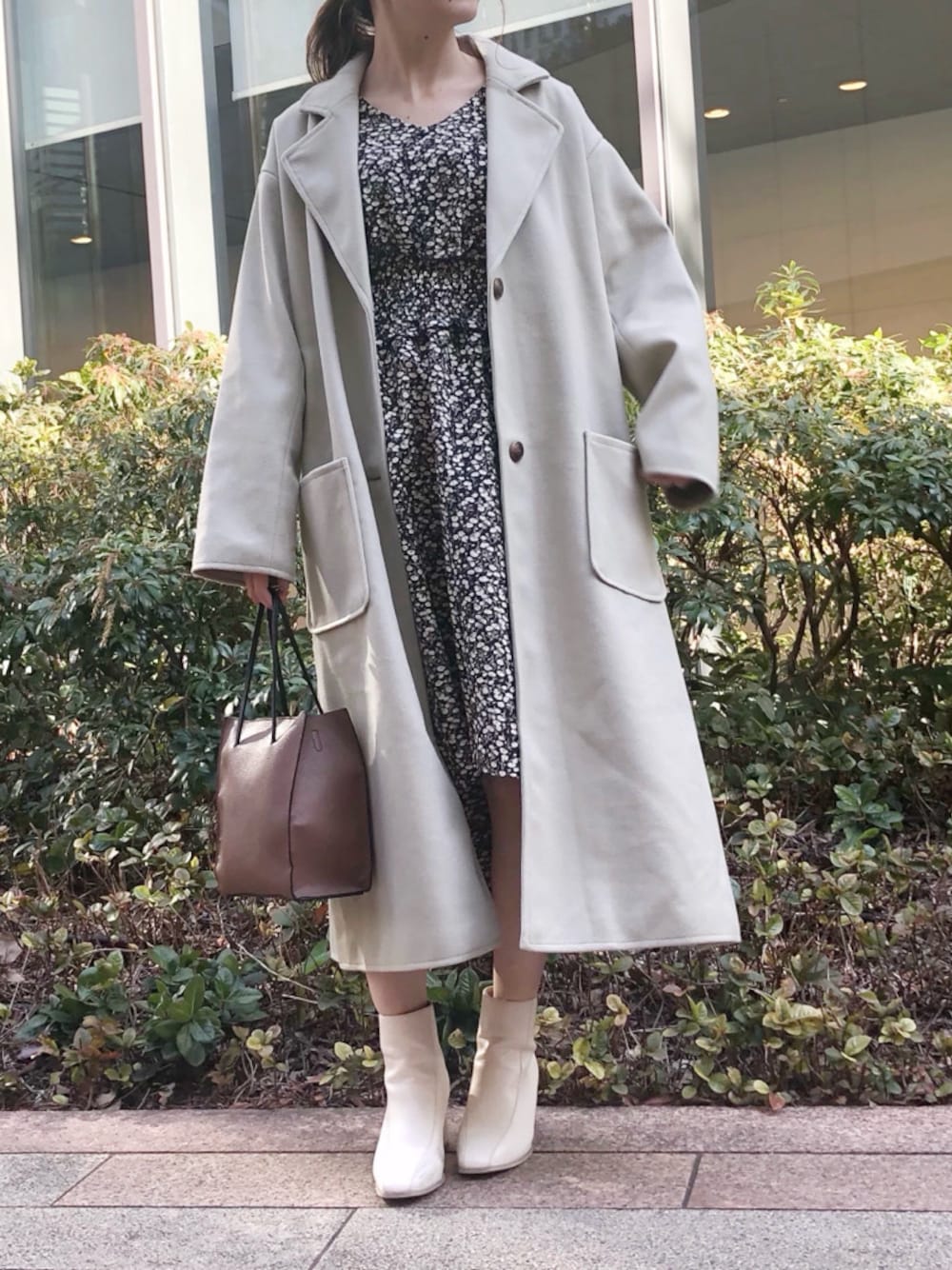 トレンド感のあるグリーンのコートは、羽織るだけでお洒落さんに❤︎色味は鮮やかすぎず少しくすんだお色味なので、グリーンコート初挑戦という方にもおすすめです♡さらっとしたお素材なので、春先まで長く着て頂けます◎私もリアルバイした、お気に入りのコーディネートです❤︎