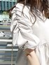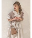 今季トレンドのティアードチュニック❤︎私はベージュのカラーをチョイスし、少し大人っぽい雰囲気で着てみました♡カラー表記はベージュですが、実際はグレージュのようなお色味です♪肩のボリューム感が、ホイップクリームみたいでとっても可愛くないですか?♡丈感は身長163cmで膝上6~7cmくらいでした!カジュアルに着たい気分の日は、パンツと合わせても可愛いです◎合わせているサンダルは、毎年dazzlinで定番の大人気サンダル❤︎ 12cmヒールですがソールが4cmあるので、傾斜を感じにくくとっても歩きやすいです♪