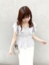 夏らしくブルー×ホワイトで纏めた爽やかコーデ❤︎こちらのトップスはウエストシャーリングなので、胴回りは身体にフィットしてくれメリハリのあるシルエットを作り出してくれます◎さらっとした柔らかいお素材なので、夏の暑い日にも大活躍してくれること間違いなしです❤︎合わせているボトムは裾のスリットがポイント◎ウエストゴムなので伸縮性もあり着心地抜群です♡足元はクリアサンダルを合わせてコーデに抜け感をプラス。ヒールが太めなので安定感がありとっても歩きやすいですよ❤︎