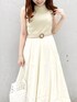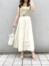 【ワンピース】去年も大人気だったワンピースが、バージョンアップして帰ってきました♡私は着用カラーのグリーンが1番お気に入りです♪爽やかカラーなので、着るだけでフレッシュな印象に❤︎ベルトを付けることでウエスト位置も強調出来、スタイルアップできます◎スカート部分は微光沢素材なので、光に当たるとツヤツヤと光ってとても綺麗ですよ❤︎【シャツ】私は二の腕を出すことに抵抗があるので、シアーシャツを羽織りました♡程よく透け感があるので長袖でも重たい印象にならず、気になる二の腕もカバーできるのでおすすめです♪【シューズ】お気に入りすぎて私のスタイリングページに何度も登場しているクリアサンダル❤︎太めのヒールで安定感があるのでとっても歩きやすく、店頭でも私服でもずっと履いています♡