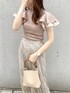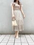 【トップス】発売前からずっと入荷を楽しみにしていたトップス♡着てみたらやっぱり可愛すぎて即購入が決定致しました…❤︎(笑)着用しているベージュのカラーはピンク味のあるお色なので、甘めがお好きな方におすすめのカラーです♪大きめのフリルなので、二の腕をスッキリ見せてくれて着痩せ効果も抜群ですよ◎【スカート】ティアードデザインが今年らしいスカート♡こちらはサイドファスナーになっており、後ろはゴムなので伸縮性があり履きやすいです❤︎カジュアルに着たい日はTシャツ合わせもおすすめ◎