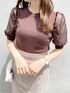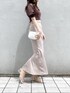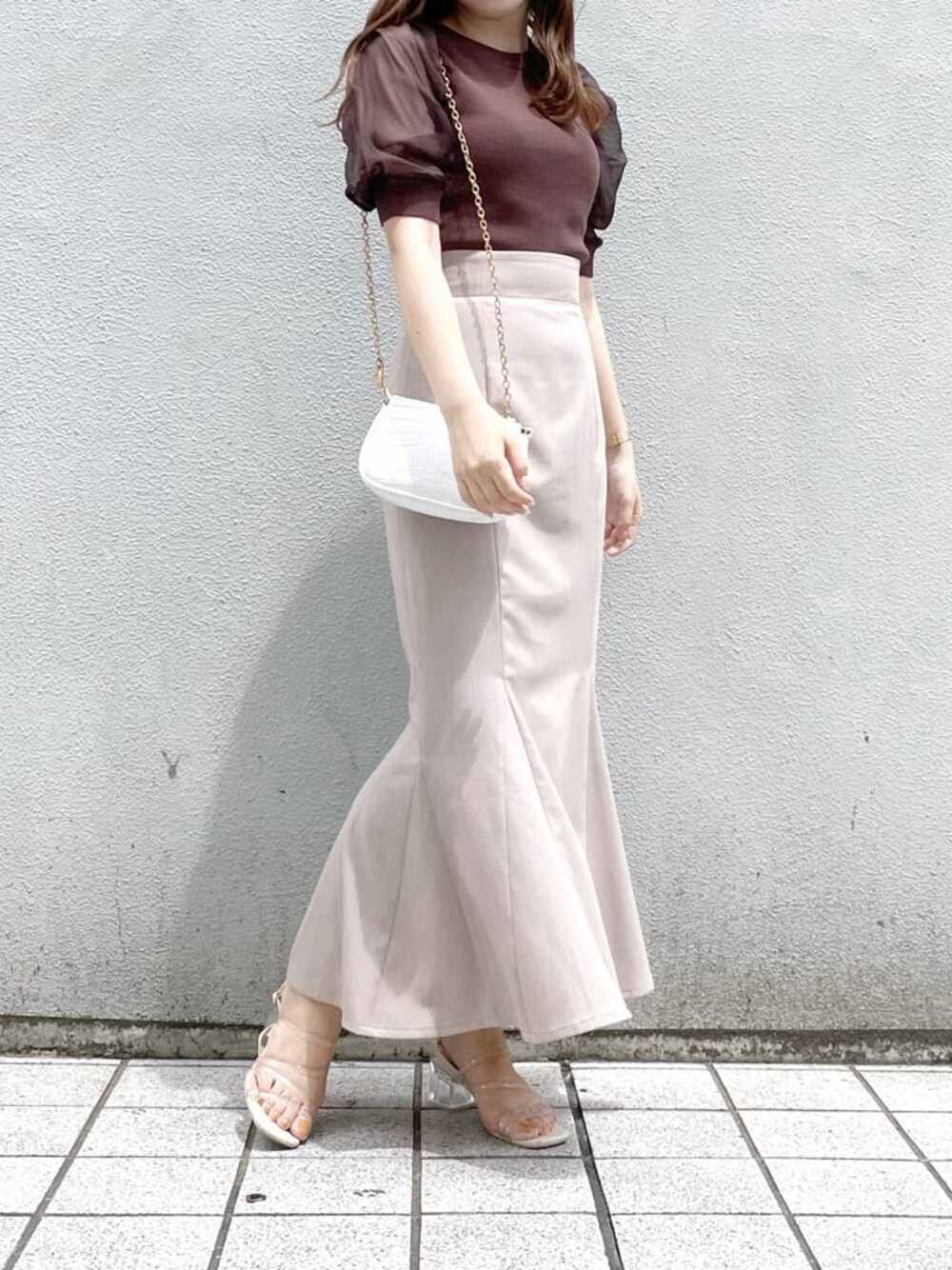 【トップス】こちらのトップスのお気に入りポイントは、なんといってもお袖の透け感❤︎ふんわりとしたお袖のシルエットと透け感が可愛すぎませんか?♡そして、可愛いだけでなく気になる二の腕もカバーしてくれるところが嬉しい◎【スカート】今季大注目のマーメイドスカート♡dazzlinのマーメイドスカートは腰回りのラインが出過ぎないので、気になるボディーラインをカバーしつつ女性らしい印象で着て頂くことができます♡【サンダル】足元はクリアサンダルを合わせて、抜け感が出るようにしました♪こちらのサンダルはヒールが太めで安定感があり長時間店頭やプライベートで履いていても全然疲れないので愛用しています♡