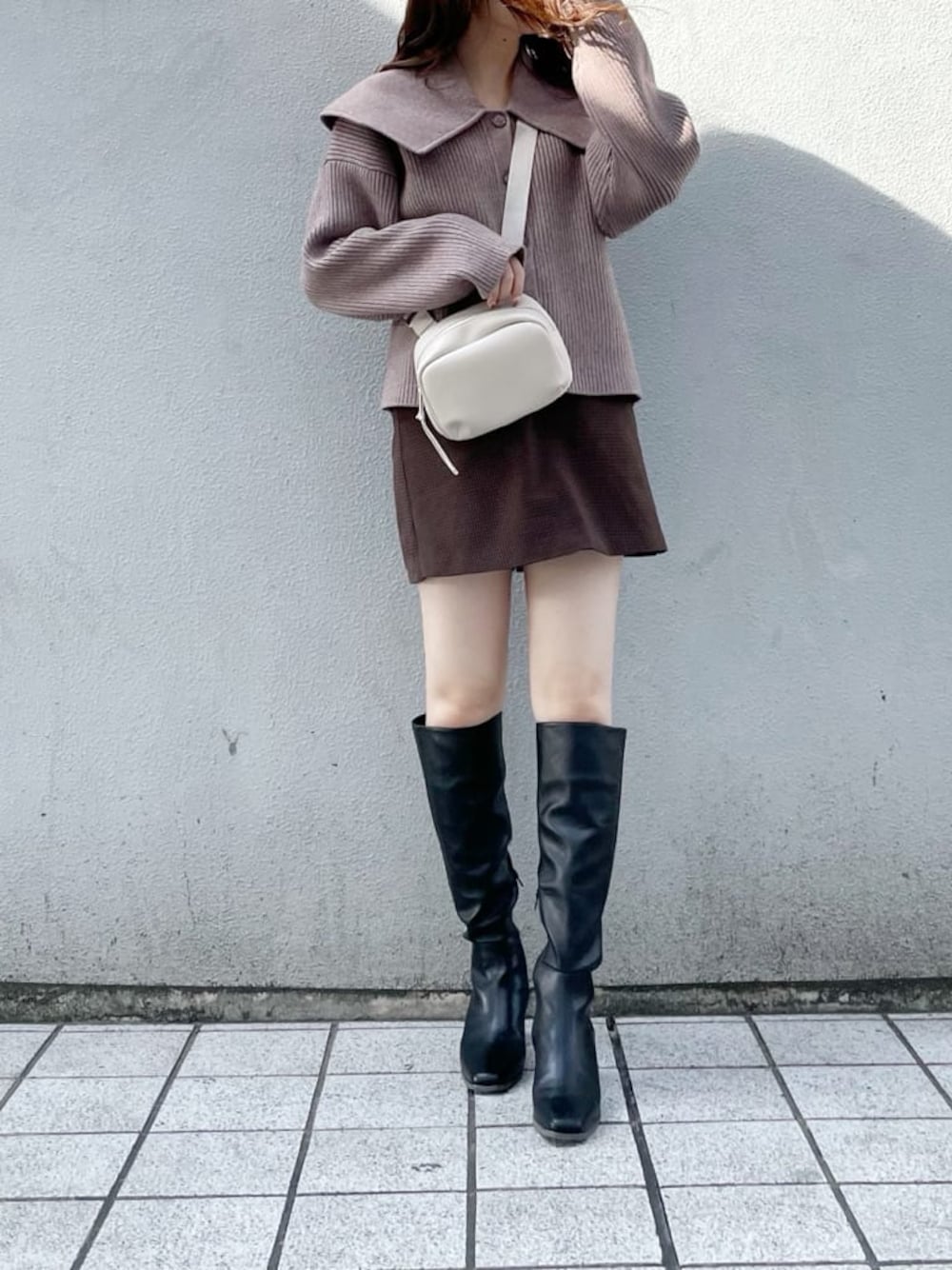 ゆるっとシルエットでモテコーデ❤︎【トップス】フロントは大きめの襟元でインパクトを◎こちらのニットはかっちりとインせず、ゆるっとアウトで着るのがポイントです♡お袖も長めなので自然と萌え袖になるところもお気に入りポイント♪さらっとしたお素材のニットなので着心地も抜群です❤︎【ボトム】こちらのボトム、スカートに見えますが実はパンツになっているんです♡短め丈のスカートだとインナーが気になりますが、パンツなので安心です◎細かめのチェック柄なので、子どもっぽい印象にならずに履いて頂けます♡【ロングブーツ】今年もトレンドのロングブーツ❤︎こちらのロングブーツはヒールが太めで安定感があるのでとっても歩きやすいです♪足の露出に抵抗がある私ですが、ロングブーツ合わせなら露出が減りショート丈のボトムも履きやすいのでおすすめです♡