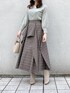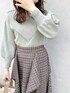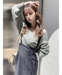 ミントグリーンで爽やかコーデ❤︎【トップス】お洒落カラーが可愛いVネックニット♡こちらのトップスは顔周りが開いているので、デコルテがスッキリ綺麗に見えます❤︎着用カラーのグリーンは少しくすみがかった落ち着いた色味のグリーンなので、普段色物を着ないという方にも挑戦して頂きやすいお色味です♪シンプルなデザインなので、柄物のスカートとの相性も抜群◎【スカート】デザインに一目惚れしたスカート♡前面だけでなく後方にもフリルが入っているので、ショート丈のアウターを羽織った時にしっかりと前後のフリルが見えるところがお気に入りです♪ウエスト部分は後ろにゴムが入っているので、伸縮性があり履きやすいです◎