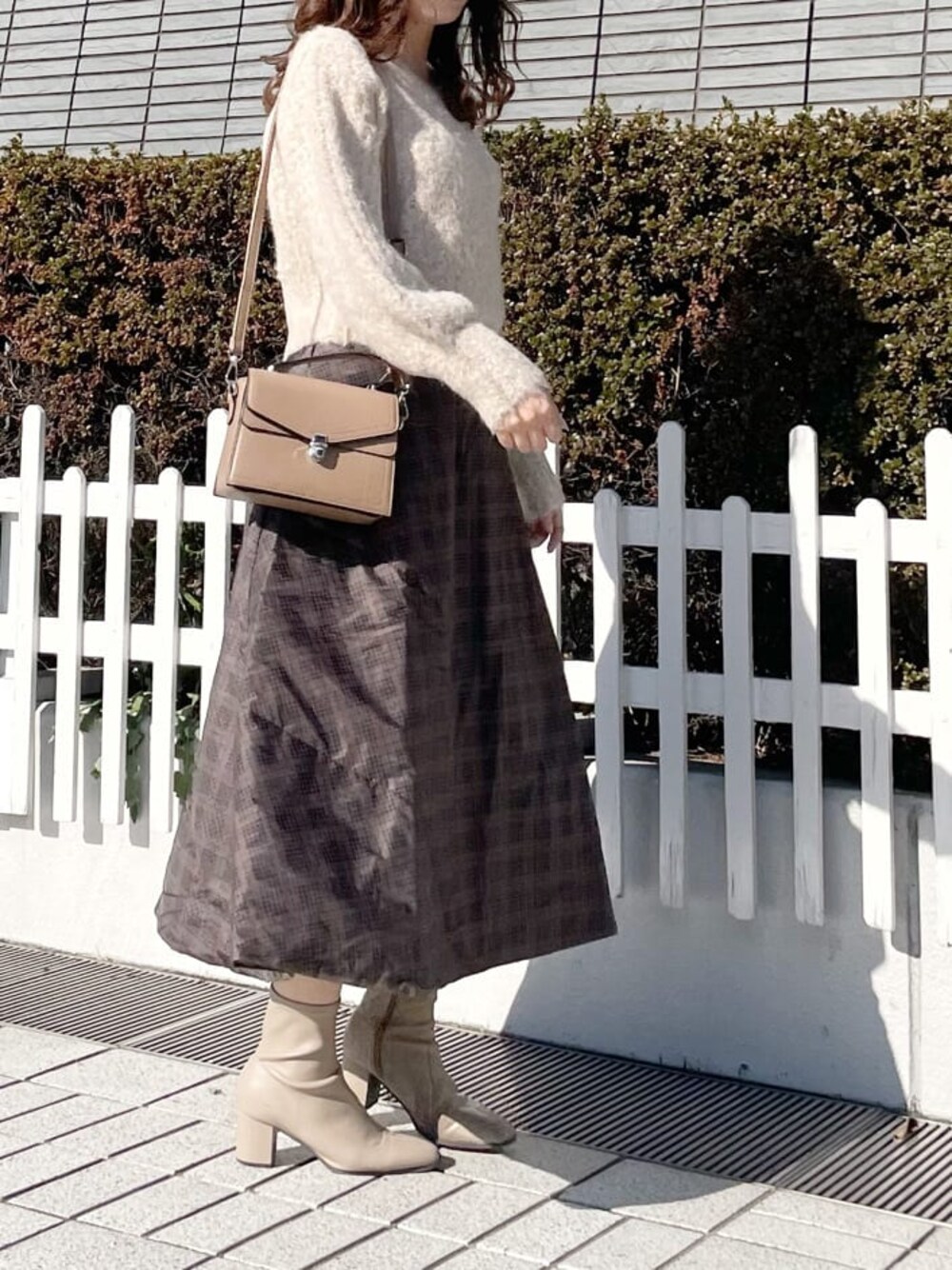 ベージュのワントーンで友達とカフェコーデ♡【ニット】こちらのニットはショート丈なのでどんなボトムともバランス良く着て頂きやすいです◎細かくラメ糸が入っているところが可愛い…❤︎お袖がたぷんとしているので女の子らしく着て頂けます♡ショート丈なのでアウトで着るのは勿論、前だけ少しインしてもウエスト位置が高く見えるのでおすすめです♪【スカート】こちらのスカートはナイロン素材の為とっても軽くて履き心地がいいです♡ふわっと広がるシルエットがとても綺麗なので、周りと差がつくこと間違いなしです❤︎
