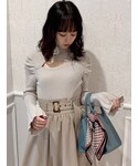 ワントーンで統一❤︎色違いコーデ♪【トップス】今季トレンドのデザイントップス♡レーヨンが入っているので柔らかくて着心地もいいです◎お袖のデザインもポイント❤︎【スカート】今年の春もマーメイドスカートはマストアイテム♡明るい配色のチェックなので履くだけでパッと華やかに♪【パンプス】ポインテッドトゥなので女性らしさを演出してくれるパンプス◎私は足のサイズが23.5cm-24cmで、Lサイズを購入しました♡