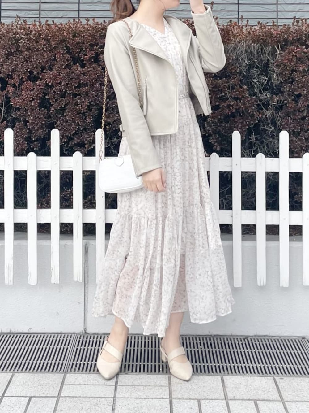 春のお花見コーデ❤︎【ライダース】こちらのライダースは、ショート丈なのでワンピースとの相性抜群です♪とても柔らかいお素材なので着心地も◎【ワンピース】こちらのワンピース、なんとdazzlinオリジナルの花柄なんです!少し滲んだような柔らかいお花柄なので優しい印象に見せてくれます♪動くたびにふわっと裾が揺れて可愛いです♡【パンプス】ポインテッドトゥなので女性らしさを演出してくれるパンプス♪踵の部分にクッションが入っておりとっても歩きやすいので、毎年色違いで購入してしまうほどお気に入りです❤︎