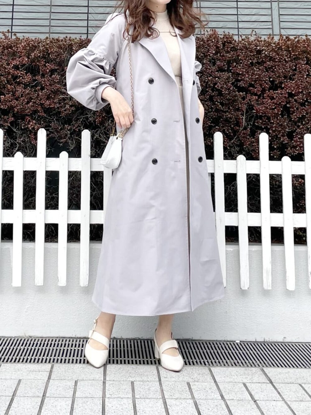 春の爽やか淡色コーデ♡【アウター】一枚で主役級トレンチコート❤︎カラー名はグレーですが、淡いブルーとパープルの中間のような絶妙なお洒落カラーなんです♡お袖の部分にはゴムが入っているので、少しお袖を上げて着るとお袖がふんわりとしてくれて可愛いです♪ハリ感のあるお素材なので高級感も◎【ワンピース】フィット感があるので女性らしい印象で着て頂けます◎ウエスト部分はピッタリ目のゴムが入っており、しっかりウエストマークできるところがお気に入りです♪【パンプス】ポインテッドトゥなので女性らしさを演出してくれるパンプス♪踵の部分にクッションが入っておりとっても歩きやすいので、毎年色違いで購入してしまうほどお気に入りです❤︎