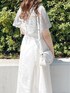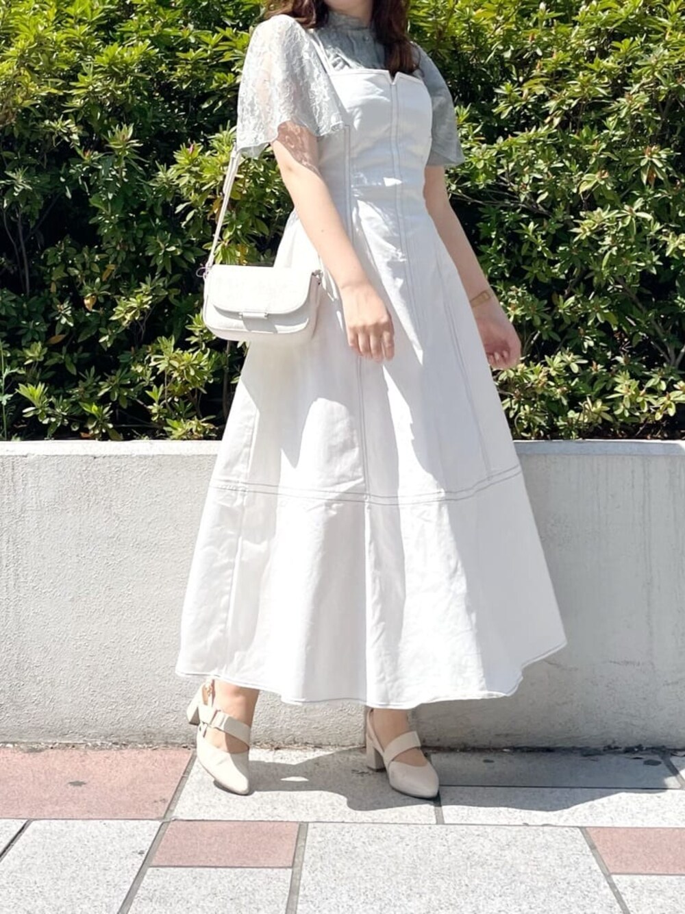 ミントグリーンのトップスを差し色にした爽やか春コーデ♡【トップス】透け感のあるお袖がポイントのレーストップス❤︎フレアスリーブになっているので、気になる二の腕をカバーしてくれるのが嬉しい◎柔らかいお素材なので、レースでもチクチクしたりせずとっても着心地が良かったです♡【ワンピース】着回し抜群のジャンスカ❤︎今回は綺麗めに着たかったので、付属のベルトは付けずシンプルに着てみました♡ベルト無しver.でもしっかりとくびれを作ってくれる美シルエットデザインなので、スタイルアップ効果抜群のワンピーです♡ 【シューズ】ポインテッドトゥなので女性らしさを演出してくれるパンプス♪私は足のサイズが23.5cm-24cmで、Lサイズを購入しました♡踵の部分にクッションが入っておりとっても歩きやすいので、毎年色違いで購入してしまうほどお気に入りです❤︎【バッグ】私もリアルバイしたバッグ♡小さめのサイズ感ですが、マチがしっかりあるので折り畳みのお財布やお化粧直し用のリップもしっかり入ります◎