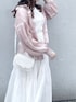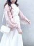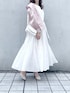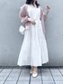 ピンク×ホワイトで纏めたフェミニンコーデ❤︎【ワンピース】動くたびにふわふわと裾が揺れるこちらのティアードワンピースは、着るだけで気分が上がること間違いなしです♡丈感は身長163cmで足首くらいの丈感なので、高身長の方にもおすすめ◎低身長の方はウエスト部分をブラウジングして着て頂くと丈が上がるのでおすすめです❤︎【シアーシャツ】今回私はピンクのシアーシャツと合わせて、大好きな甘めコーデにしてみました♪こちらのシャツは光沢感のあるお素材なので、光に当たるとキラキラと煌めいてとても綺麗ですよ♡【パンプス】去年も大人気だったパンプスが今年も登場♡私は足のサイズが23.5cm-24cmで、Lサイズを購入しています♪太めのヒールで安定感があるので歩きやすいです♡【バッグ】ころんとしたフォルムが可愛くてお気に入りのバッグ♡しっかりマチもあるので、お化粧直しのコスメや折り畳み財布・ハンカチも楽々入ります♪