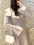 女子会に着て行きたい綺麗めコーデ♡アウターは襟が取り外し可能で、今回は外して着てみました♪ニットワンピースは胸元にフリルがあるので顔周りが華やかな印象に♡襟を出して着るのがトレンド感が出ておすすめです◎