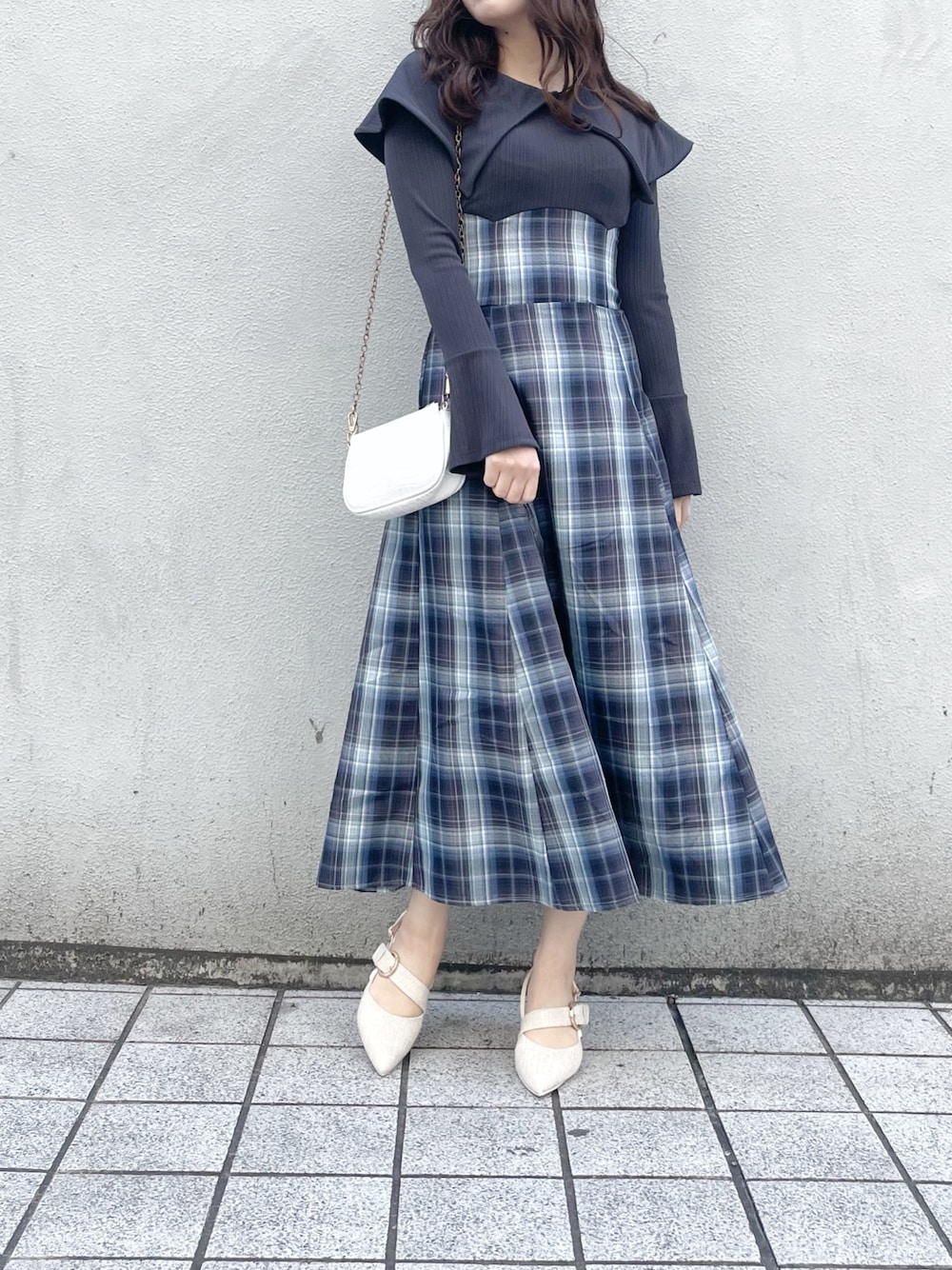 kana(dazzlin)のワンピース「ビッグカラーチェックコルセットワンピース」を使ったコーディネート