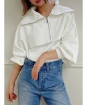 【トップス】トレンドのジップデザイン❤︎ビックカラーなので小顔効果も抜群♡デニムと合わせてカジュアルに着るのもおすすめ♪【スカート】裾のカーブデザインがおしゃれなスカート♡タイトすぎないデザインなので、お尻周りや腰回りのラインを拾いすぎず履きやすいです❤︎