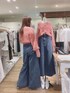 ❤︎店内リール着用❤︎ ラメ糸が入ったキラキラニットを主役にしたコーデ♡トップスはボタンを開けるとカーディガンとしても着て頂けます◎ 合わせているブーツは、リアルバイしたショートブーツ♪柔らかいお素材なので、店頭で1日履いていても靴擦れしたことがないです◎私は足のサイズが23.5~24cmで、Lサイズがぴったりでした♡