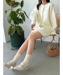 今季トレンドのセットアップ♡もちっとした厚みのあるお素材なので、とても着心地がいいです◎ロングブーツは足のサイズが23.5cm~24cmで、Lサイズがぴったりでした♪