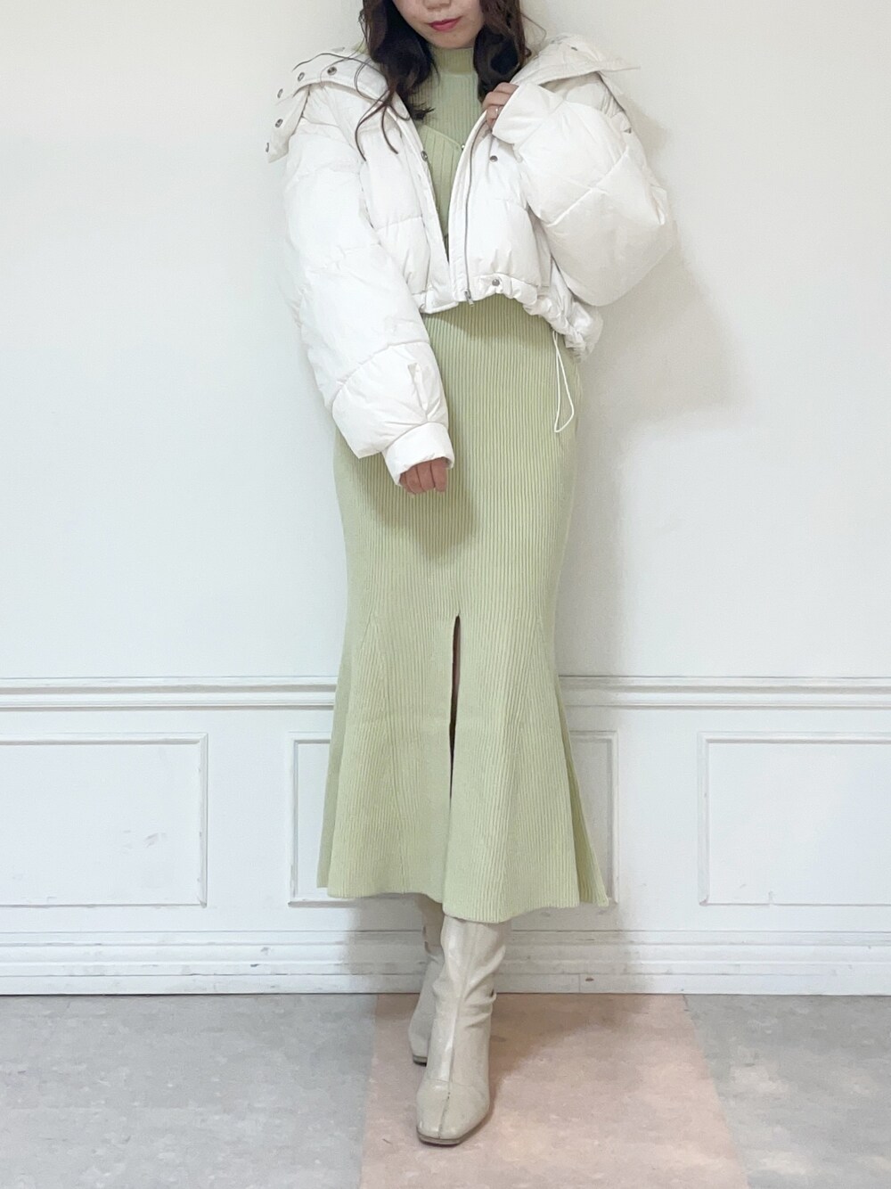 【アウター】 こちらのアウターはウエストの部分を絞って着て頂くことができるので、お好みの丈感で着て頂けます◎お袖の部分は内側がリブになっているので、風を通しにくく熱がこもりやすいので温かいです♪お袖の部分とフードは取り外しが可能なので、全て取り外すとベストとしても着て頂けます♡ 【ワンピース】 柔らかい素材のニットワンピースなのでとても着心地がいいです♪裾の部分はスリットが入っているので、足元を綺麗に見せてくれます。
