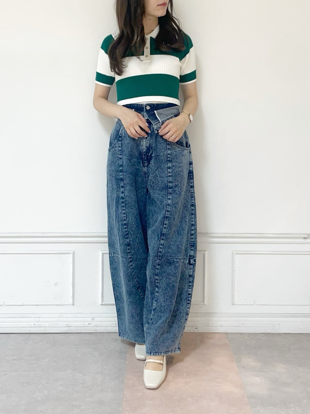 今年らしいカジュアルコーデ❤︎パンツはカーブラインシルエットなので、お尻周りや腰回りをカバーしてくれます◎