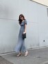 \\着回し無限大!セットアップ// 一見ワンピースに見えるこちらのアイテム、なんとコンパクトトップス×マーメイドスカートのセットアップ!生地はレーヨンとポリエステルで夏でも涼しく着られるさらっとした着心地◎カラーは涼しげなブルーをチョイスしてみました⸜❤︎⸝少しダークトーンのネイビーに近いお色味で細見え効果抜群…♡裾に向かってグラデーションになっているのも高級感が出て素敵ですよね☺︎ ランダムプリーツなので縦のラインが強調されてピタッとしたマーメイドスカートよりも細見えしました!(そして下着のラインも気にならなかったです!大切!!)マーメイドシルエットのスカートだと体のラインが出すぎて苦手…という方にもぜひ挑戦していただきたいなと思いました⸜❤︎⸝ トップスは袖周りにボタンが付いていて外すとオープンショルダー、ノースリーブにもできちゃいます☺︎!二の腕出るの苦手だな…という方はオープンショルダーにすると抜け感も出ますし、とことんすっきりとシンプルに着たい!という方であればノースリーブにすればコンパクトなシルエットで着用することも出来ます◎丈は短めなのでハイウエストのボトムスと合わせると相性◎です♡ セットアップ、半袖、ノースリーブ、オープンショルダー、マーメイドスカート…1つのアイテムで6アイテム分になるなんて着回し力無限大すぎて…♡ 合わせたバックも新作のプリーツポシェット!コンパクトなサイズ感ですが5cmのマチもついているので小さめの財布、リップ、携帯、ハンカチくらいであれば入ります◎紐の長さも調整できるので斜めがけもできちゃいます!子連れ外出の時、貴重品は子供の荷物と別にすぐ取り出せるようにしたい…ってママにもぴったりのサイズ感♡ シューズもダークトーンで合わせて色味は秋を意識してみました☺︎これから本格的に夏ですが今から着られる秋物もぜひチェックしてくださいね⸜❤︎⸝