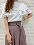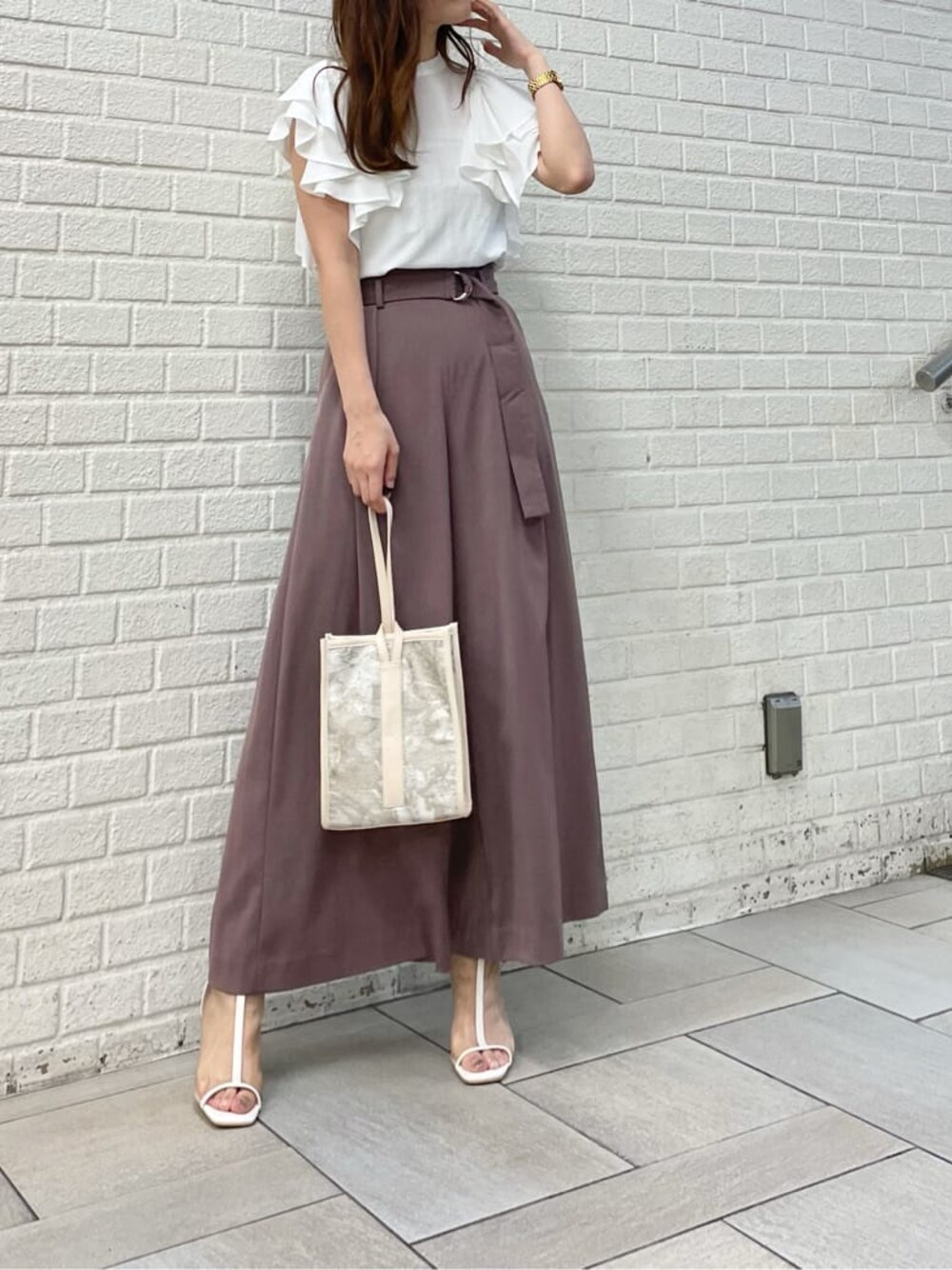 \\カシスカラーでハンサム女子コーデ⸜❤︎⸝// オフィスからデイリー使いまで着回し力抜群のブラウスが入荷しました☺︎なんといっても袖のボリューム!着るだけで腕をほっそりと見せてくれるのはもちろん、シンプルなアイテムと合わせてもコーディネートが華やかに♡袖は2段階フリルになっていてゴムの入った袖部分に腕を通さずフレンチスリーブとしても(写真1~4枚目)袖を通して5分袖としても(写真5~7枚目)着れる仕様になっています!薄手でさらっとした生地感なので残暑の残る晩夏から秋まで気温が不安定な時期にぴったりです◎合わせたボトムスはMERCURYDUOお得意のスカート見えするワイドパンツ♡あまりパンツスタイルに馴染みのない方でも挑戦しやすくなってます☺︎しっかりボリューム感がある分ウエストベルトを締めるとウエストがほっそりと見えてスタイルアップ効果抜群◎ポリエステル×レーヨンのとろんとした素材感で歩く度にふわっと揺れるシルエットが上品です♬︎透け感はないので春夏はブラウスやTシャツ、秋冬にはニット合わせでオールシーズン着用できるのも嬉しいポイント♡ トップスボトムスがシンプルなので小物は柄をプラスしてコーディネートのアクセントに☺︎ジャガードのミニバックは持つだけで秋冬ムードを上げてくれる存在感のあるアイテムです◎ショルダーも付属なので肩掛けでも使えて実用性も◎足元は透け感を出してコーディネートを軽い印象になるようまとめてみました⸜❤︎⸝
