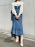 高めの切替位置と広がりすぎないシルエットで細見え効果抜群のジャンスカ♬︎今年は後ろプリーツでバックスタイルまで可愛くなっています♡合わせたブラウスは襟が取り外しできる2way仕様!襟なしだとスタンドカラーですっきりとした印象、付けると一気に今年らしいクラシカルな印象になります♬︎足元はシアーなブーツで合わせて抜け感を出しました♡