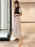 リラックス感のある雰囲気のワンピースはロング丈×短丈ベストドッキングのデザインでスタイルアップ効果抜群◎ウエストにはゴムも入っていてマタニティウエアとしても着られるくらい楽ちんな着心地です♬ 裏地も付いているので透け感が気にならないのも嬉しいポイント!合わせたシューズはスタイリングによって踵をつぶしても履ける2way仕様♬ラフになりがちなフラットシューズもヒールにメタルプレートがドッキングされているのでキレイめなスタイリングとも相性◎です!