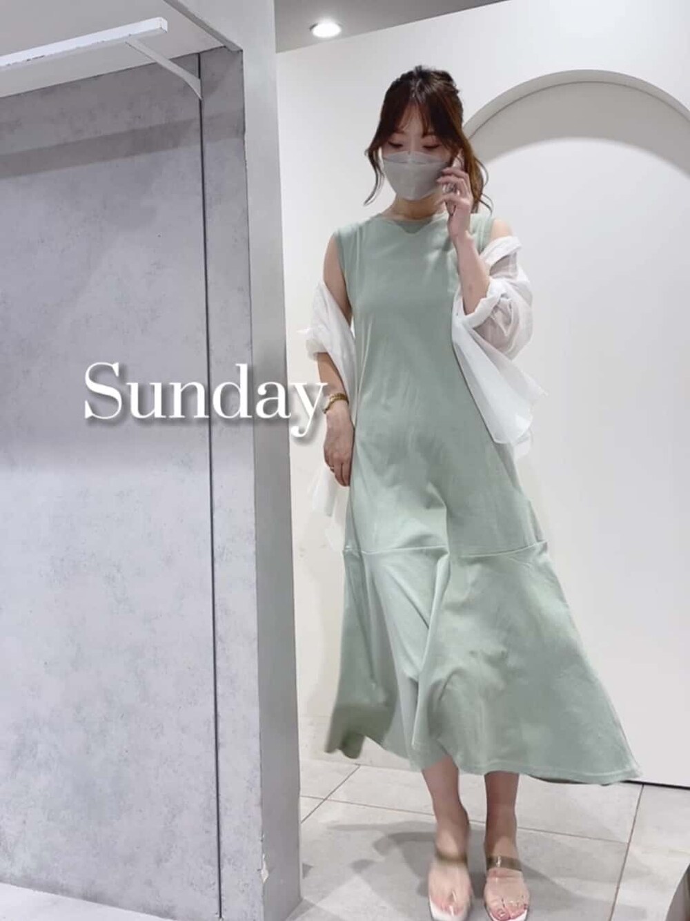【Sunday coordinate】さらっと着られるカット素材のワンピースにシアーシャツを合わせた大人のリラックスコーデ¨̮カジュアルアイテム同士で組み合わせてもカラーを淡色でまとめるとキレイめな印象に♡ワンピースは後ろが深めのV開きになっているので、カップ付きバックシャンデザインのインナーを仕込めば楽ちんとオシャレみえのいいとこ取り¨̮♡蒸し暑い日や旅行にぴったりのコーデです! Instagramで1週間コーデリール投稿しています¨̮