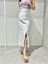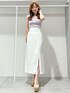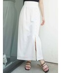 \\深めのスリットで女っぽ♡淡色コーデ// フレンチスリーブ、ビスチェデザインとシンプルな中にもこだわりの詰まったニットは前後2wayで着用可♬ さらっとしたニットで真夏もストレスフリーの着心地¨̮合わせたスカートは深めのスリットでトレンド感◎タイトすぎずに腰周りのラインを綺麗に出してくれるナローシルエットが上品な印象♡165cmMサイズ着用。くるぶし上5cm程の丈感、スリットの深さは膝上くらい¨̮カジュアルからキレイめまで着回し力抜群のスカートです♬