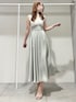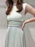 高級感抜群¨̮サテン切替ワンピース♡ サラッと固めのニットと柔らかなサテンのドッキングワンピース♬ 贅沢にたっぷりと生地を使っているので動いた時にふわっと広がるシルエットが上品です♡高めのウエスト切替でスタイルアップ効果抜群!腰位置にはシャーリングゴムが入っているので程よく伸縮性もあり身体のラインを綺麗に見せてくれます♬ マットなチュールが大人見えするサンダルは傾斜も緩く疲れづらいお作りです♡