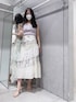 【Tuesday coordinate】 ラベンダー×ホワイトで爽やかフェミニンコーデ♬ ビスチェ風デザインのニットは前後2wayで着用可能!程よく肩周りを隠してくれるフレンチスリーブも嬉しいポイント♡エスカルゴのような螺旋切替のスカートは動いた時の揺れ感がとても上品♡線画タッチの花柄で甘すぎないスカートです♬ 165cmSサイズ着用で足首上10cmくらいの丈感でした!Instagramで1週間コーデリール投稿しています¨̮