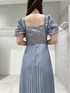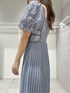 \\華奢みえ効果抜群!ドレスコーデ// 刺繍が華やかなドレスは胸下切替、コルセット風デザインでスタイルアップ効果◎裾に向かって広がるアコーディオンプリーツで気になるお腹周りを自然にカバー♬ パフスリーブも控えめなので挑戦しやすいですよ♡165cmMサイズで足首かかるくらいの丈感。イヤリングはシルバーで合わせました♡