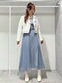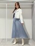 \\ホワイト×ブルーの爽やかコーデ// 胸元の刺繍、ふわっと揺れるプリーツデザインが華やかなドレスもライダース、ショートブーツで合わせればデイリーな着こなしに◎オフホワイトのフェイクレザーライダースは羽織ると顔周りを明るくしてくれます♡とても柔らかく軽いフェイクレザーなので着心地も抜群!シューズの色と合わせれば統一感も出てくれます¨̮ストレッチの効いたショートブーツは足をすらっと見せてくれる優秀アイテム♡ 23.5cmで36のサイズがぴったりです!