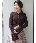仲田桃子(MERCURYDUO)のカーディガン/ボレロ「襟付きリブニットカーディガン」を使ったコーディネート