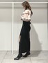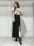 \\スリットがアクセント!クラシカルコーデ// ラッフルデザインが華やかなブラウスは肩にボタンが付いていて、肩開きでも着られる2way仕様☺️インナーキャミ付きなので安心して着用できます🫧トレンドのスリットスカートは着用のブラックのカラーのみ地厚のデニム素材となっています☺️深めに入ったスリットが抜け感をプラス🫧ハイウエスト仕様でスタイルアップ効果抜群です!165cmMサイズで足首かかるくらいの丈感でした!