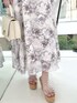 \\1枚で華やか🌸春の大本命ワンピ// プリントのカラーに合わせた袖のパイピングデザインがポイントのワンピース☺️ ウエストはリブニットですっきりとしつつ伸縮性もあって着心地◎ 胸元はインナーを気にせず着られる3枚仕立てになっています🫧 袖もふわっとした五分袖なので二の腕も自然にカバー🫶165cmMサイズで足首を3cm程の丈感でした☺️ 合わせたサンダルは毎年大人気の神サンダル🫧ウエッジソールで傾斜が緩やかなので楽ちんな履き心地、驚くほど軽くて長時間履いていても疲れづらいです☺️23.5cmで36サイズがぴったりです!