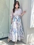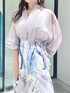 \\短丈シアーシャツでスタイルアップコーデ🫧// 短丈のシアーシャツはほんのり艶感のある高見え素材🤍裾にギャザーを寄せているので自然とコロンと丸みのあるシルエットに☺️羽織としてはもちろん、トップスとしても着られる万能アイテムです! ペイントタッチの柄が華やかなスカートは腰周りがすっきりと見えるシルエットでスタイルアップ効果抜群!ポリエステルでシワになりづらいのも嬉しいポイント☺️165cmMサイズで足首上3cm程の丈感です!