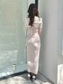\\着るだけで-5キロ🥹スタイルアップワンピ// クロップドニットとキャミワンピのセットアイテム! 胸下丈の短めニットはオフショルにもできる2way仕様です🫧身体のラインを綺麗に見せてくれるIラインのシルエットでスタイルアップ効果抜群!ニットワンピなので伸縮性も◎です☺️深めのスリットで女性らしさをプラス❤️キャミワンピはアジャスターで丈調整が可能です!小物はホワイト、ブラウンでまとめて春らしい淡色コーデにしました🌸