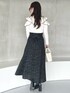 仲田桃子(MERCURYDUO)のニット/セーター「オープンショルダーラッフルニット」を使ったコーディネート