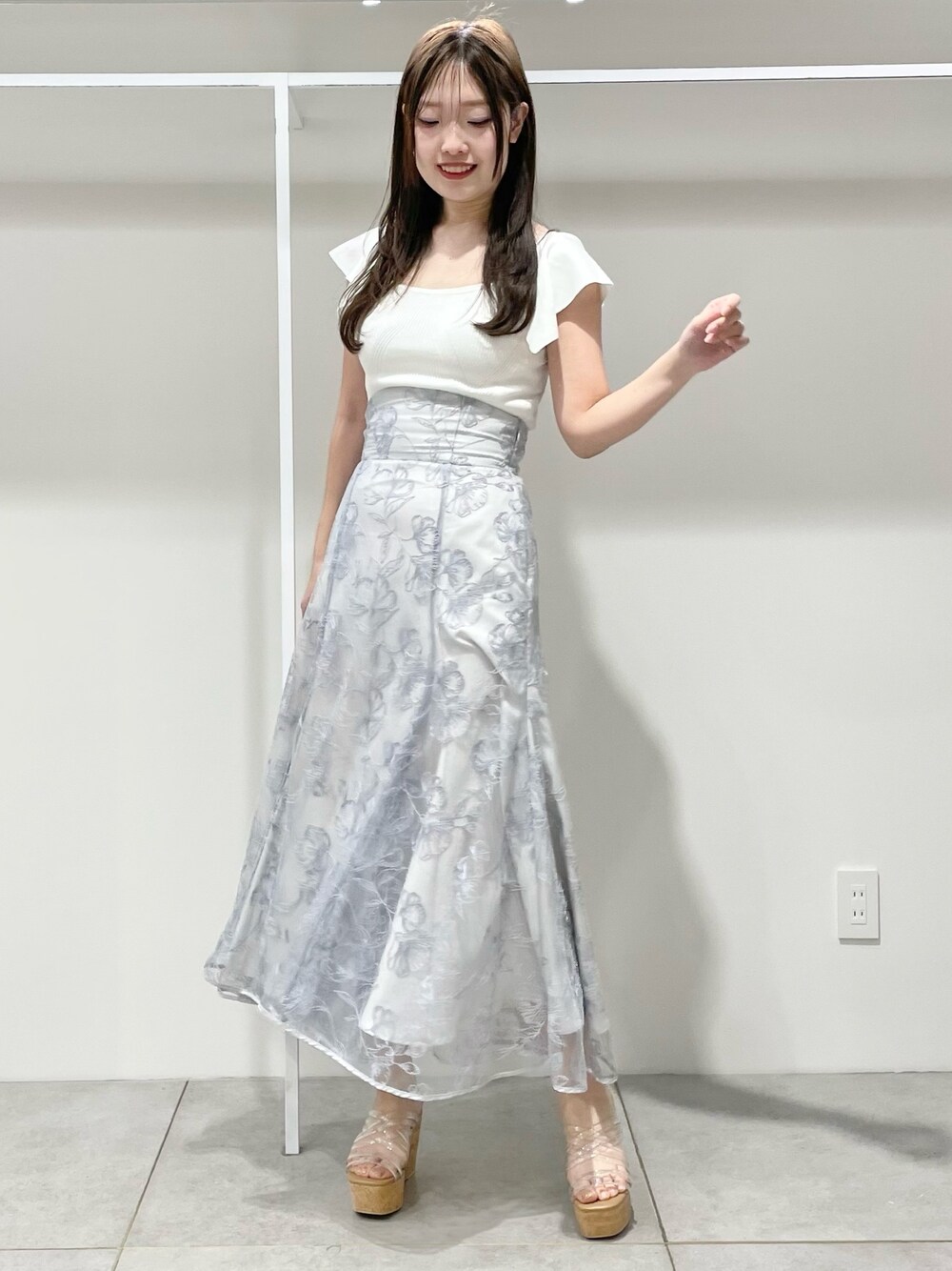 \\爽やかブルーコーデ// 【トップス】 毎年大人気のラッフルニットが今年も登場⸜❤︎⸝デコルテが綺麗に見えるスクエアカットとさりげなく肩周りをカバーしてくれるラッフル袖が毎日でも着たい定番ニットです🫧 【スカート】 刺繍が華やかなスカートはレースアップでウエスト調整可能🫶ブラウス合わせでお仕事にも最適なオンオフ両用できるスカートです☺️165cmMサイズで足首が見えるくらいの丈感でした! 【シューズ】毎年大人気の神サンダル🫧ウエッジソールで傾斜が緩やかなので楽ちんな履き心地、驚くほど軽くて長時間履いていても疲れづらいです☺️23.5cmで36サイズがぴったりです!