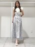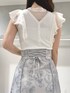 【トップス】 シアー×ニットの異素材ドッキングニット♡ウエストが太めのリブ切替でインでもアウトでもすっきり着用できます!肩周りを自然にカバーしてくれるのも嬉しいポイント☺️ 【スカート】 刺繍が華やかなスカートはレースアップでウエスト調整可能🫶ブラウス合わせでお仕事にも最適なオンオフ両用できるスカートです☺️165cmMサイズで足首が見えるくらいの丈感でした! 【シューズ】 つま先のメタルパーツがポイントのサンダル👡華奢なストラップがフェミニンコーデにぴったりです🤍