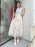 仲田桃子(MERCURYDUO)のワンピース「ベアニットドッキング花柄バックレースアップワンピース」を使ったコーディネート