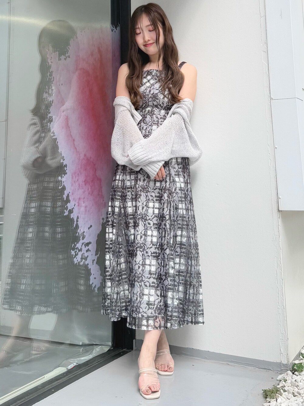 仲田桃子(MERCURYDUO)のワンピース「レースチェックプリントバックシャンキャミワンピース」を使ったコーディネート