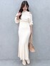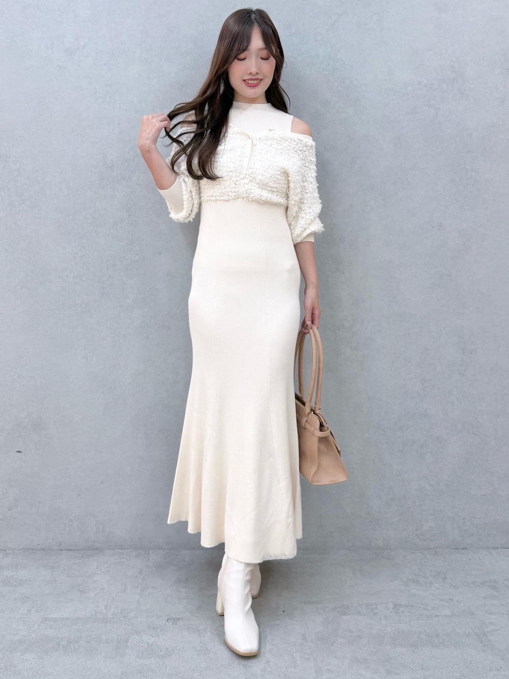 仲田桃子(MERCURYDUO)のワンピース「ツイードニットカーデドッキングマーメイドニットワンピース」を使ったコーディネート